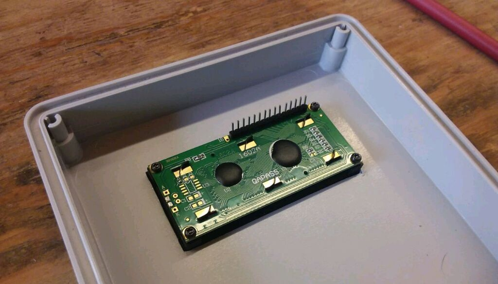 Il retro del display LCD 16x2 montato sul case